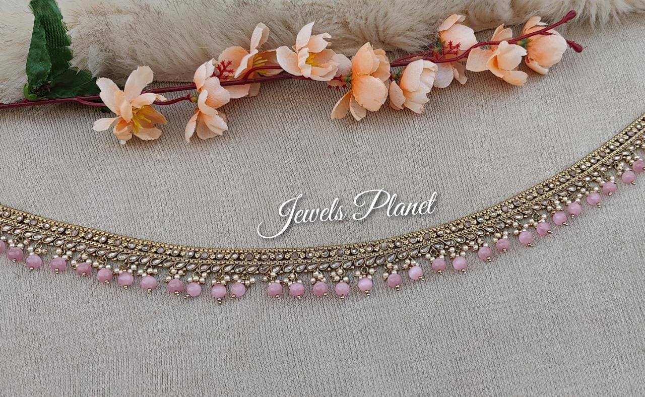 Beautiful polki waist chain handcrafted by our in-house karigars! Pretty with different color accents!