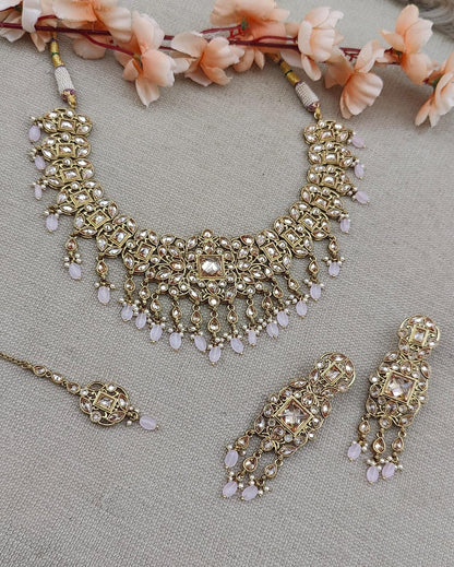 Beautiful pure brass polki necklace set handcrafted by our in-house karigars