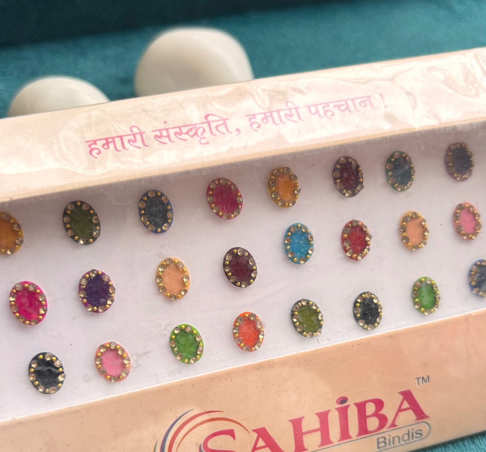 Beautiful blend of high quality rhinestone studded multi oval bindis in a single card. Bindis can accentuate your look to an entire different level!