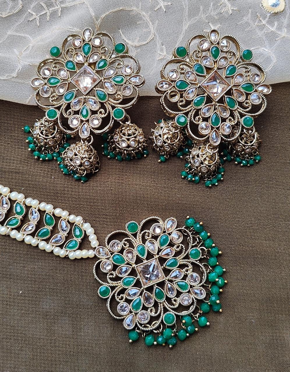 Beautiful polki earrings with maangtikka handcrafted by our in-house karigars