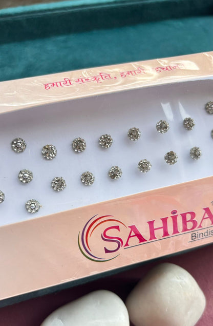 Beautiful high quality rhinestone studded silver bindis in a single card. Bindis can accentuate your look to an entire different level!