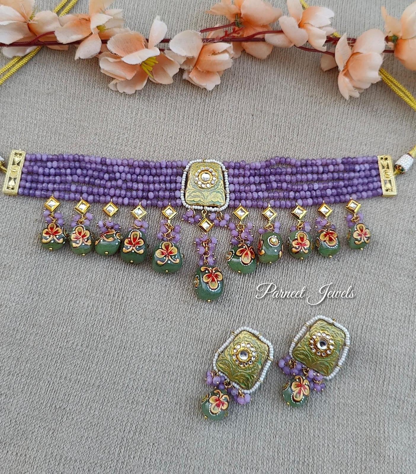 Gorgeous high quality meena kundan choker set handcrafted in our own manufacturing unit.