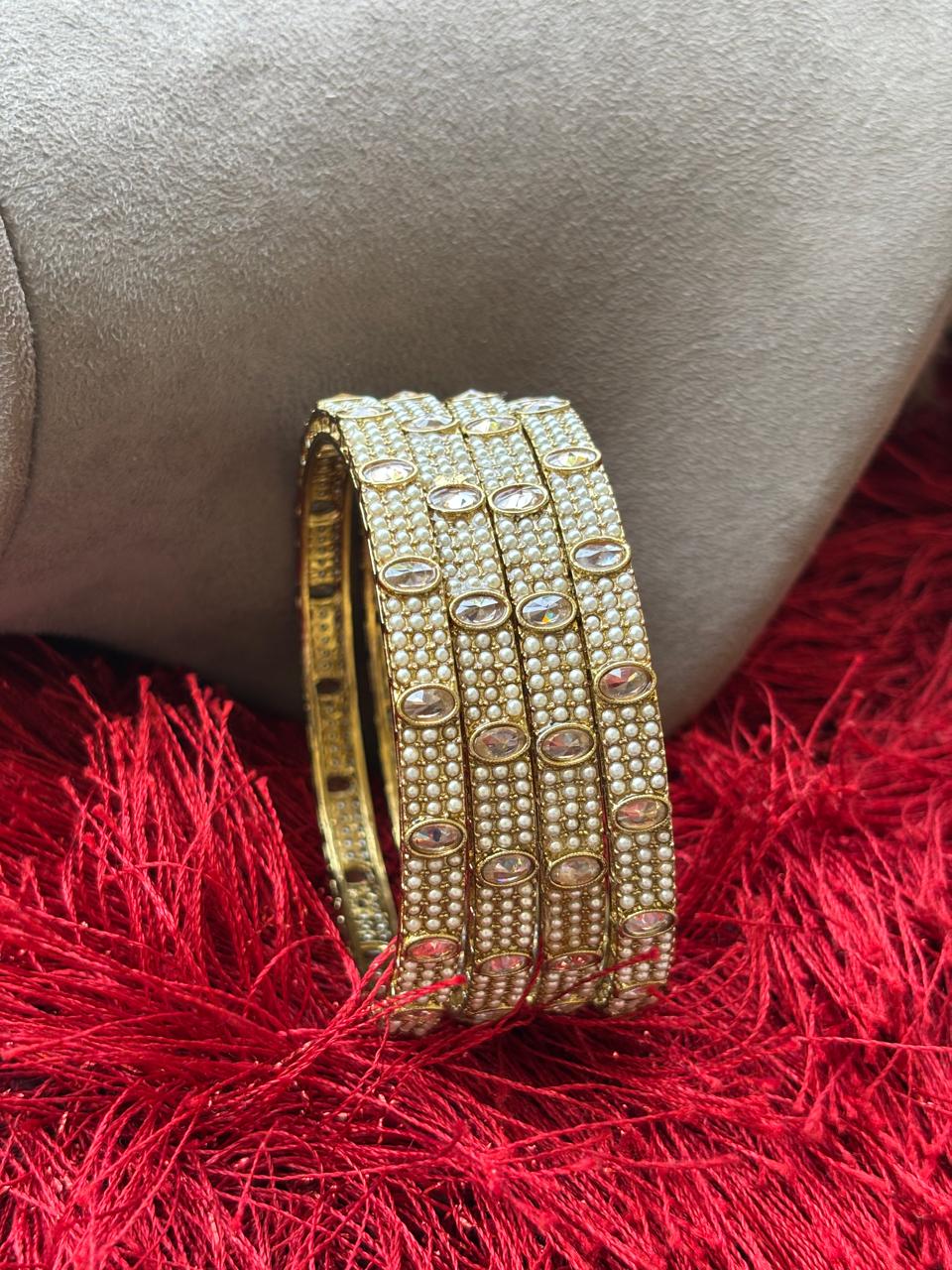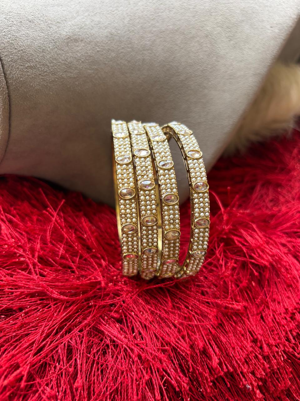 Beautiful polki bangles (set of 4) handcrafted by our in-house karigars